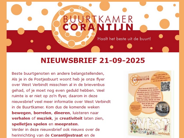 - Kom langs bij de speciale Buurtborrel (donderdag 25 september 17:30 – 20:00);