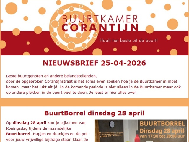 - In Balans Cursus op maandag en donderdag van 13 tot 14 uur. Deze gratis cursus is al begonnen. Check of je nog mee kan doen via de contactgegevens op deze pagina: www.buurtkamercorantijn.nl/in-balans.